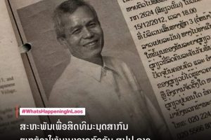 “ພິທີອະທິຖານເພື່ອອ່ວຍພອນໃຫ້ທ່ານສົມບັດ ສົມພອນ ໄປສູ່ສຸຂະຕິ ຊື່ງເປັນເວລາ ໑໓ ປີ ທີທ່ານໄດ້ຫາຍສາບສູນຕໍ່ໜ້າປ້ອມຕຳຣວດໃນນະຄອນຫຼວງວຽງຈັນ”