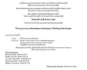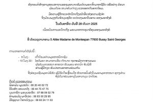 “ ບຸນອຸທີດແດ່ດວງພຣະວີນຍານຂອງພຣະບາດສົມເດັດພຣະເຈົ້າມະຫາຊິວີດ ສຣີສວ່າງ ວັທນາ ໃນມື້ນີ້ ວັນອາທີດ ວັນທີ ໒໘ ທັນວາ ໒໐໒໕ ທີ່ວັດເວລຸວະນາຣາມແຫ່ງເມືອງບຸດຊີ ແຊງຊອກ ເຂດ ໗໗ ຊານນະຄອນຫຼວງປາຣີສ ປະເທດຝຣັ່ງເສດ :