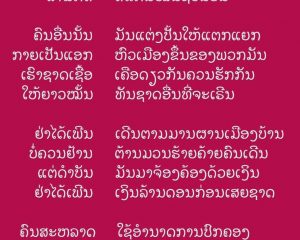 Read moreໂກກນາໂຖຊວນເຊື່ອ ຄວາມເວົ້າ ຊວນເຊື່ອຊ້ອນ ສອນທີ່ທາງລວງກວມກັນ ມາເຖິງຖອງ ທ່າທາງເບືອນບ້ຽວໃສ່ກັນ ມາເປັນລໍ້ ເຕັມກະທໍຊົມຊື່ນແຫກຕາ ເຕາະຕ່ອງຕ້ອຍ ຕາມຕື້ສາກລະຄອນ ພໍມາ ເຖິງຍຸກນີ້ ແນວສື່ສານໄວທັນສມັຍ ທາງມືຖື ຖ່ວງທັນວັນມື້ບັດນີ້ ຄືຈິງແທ້ ທິດສະດີທາງບໍ່ຊື່ຖືເປັນ ຄວາມຫລອກລໍ້ ພໍຂຶ້ນນັ່ງຄອງ ຄັກນໍ ອັນວ່າ ພົງພີ່ນ້ອງ ແນນນຶ່ງນາມສະກຸນນາໂຖ ຈູນເຈືອກັນ ກະທັນຫັນຮອງພື້ນກິນກັນ