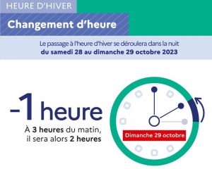Read moreປ່ຽນໂມງຍາມໜາວ : ໓ໂມງຄືນວັນເສົາ ວັນທີ໒໘ ຕຸລາ ໒໐໒໓ ຕໍ່ວັນອາທີດ ຕ້ອງຫັນກັບຫຼັງ ໑ຊົ່ວໂມງ ເປັນ ໒ ໂມງກາງຄືນ Passage à l’heure d’hiver ! Publié le 23 octobre 2023 – Direction de l’information