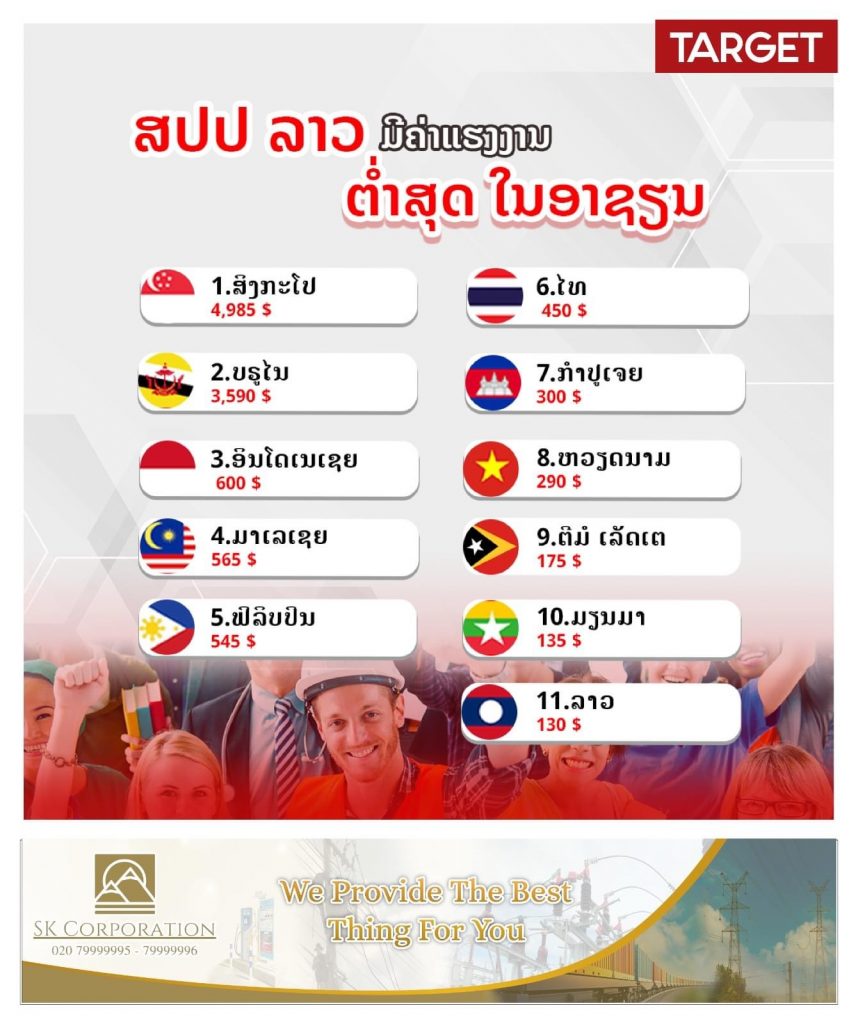 “ເງີນເດືອນຄ່າແຮງງານໃນສປປລາວ ຕໍ່າສຸດໃນເອເຊັຍ”~ຂໍ້ມູນຈາກTarget