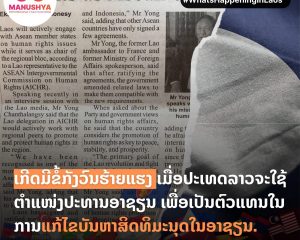 Read moreເກີດມີຂໍ້ກັງວົນຮ້າຍແຮງ ເມື່ອປະເທດລາວຈະໃຊ້ຕຳແໜ່ງປະທານອາຊຽນ ເພື່ອເປັນຕົວແທນໃນການແກ້ໄຂບັນຫາສິດທິມະນຸດອາຊຽນ. ~ ຂ່າວຈາມຸນນິທິມະນຸດສະຍະ~ Manushya Foundation https://www.facebook.com/100066378376617/posts/pfbid02fwzFv6ypy9HvzUoHKfYmxKry8ABAbc7XPLr9SGiWaGYAM1oEVQSp3B2iAo9WynMAl/