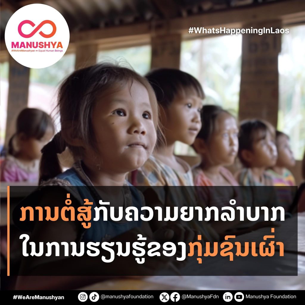 “ການຕໍ່ສູ້ກັບຄວາມລຳບາກໃນການຮຽນຮູ້ຂອງກຸ່ມຊົນເຜົ່າໃນສປປລາວ”~ຂ່າວຈາກມຸນິທິມະນຸດສະຍະ~ Manushya 10/03/2024 Lao Info ການເມືອງ - POLITIC, ສັງຄົມ - SOCIETY https://www.facebook.com/100066378376617/posts/pfbid02dYDLigfjCiLaojeGLm66v42ZzmzUduah6JnSrbF4Ptb6e1LSQvQKUzGLsAYZFnFEl/