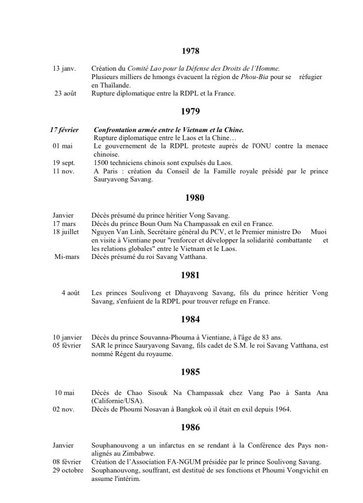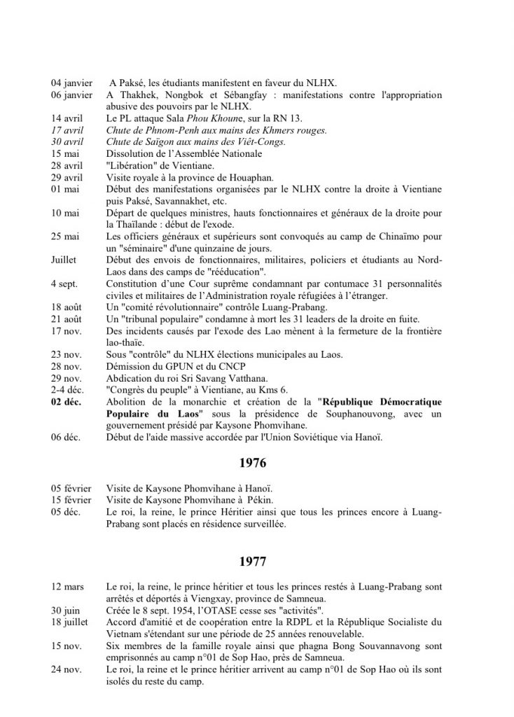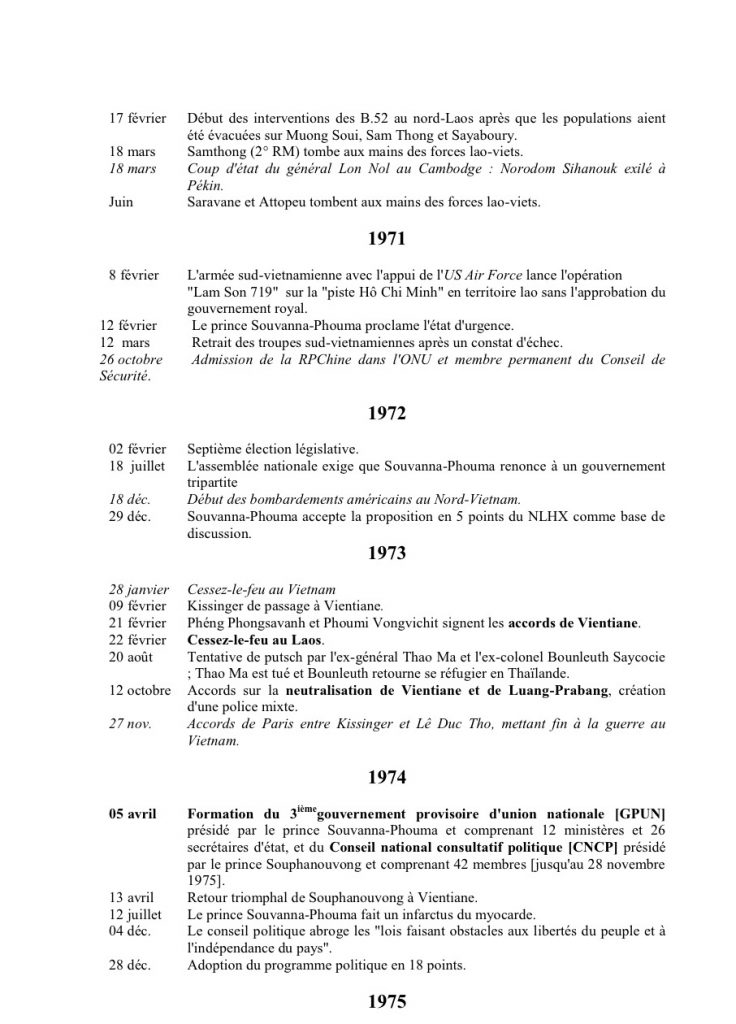 Créé en 1353, le royaume du Lane-Xang devient un Etat indépendant en 1949 dans le cadre de l’Union française. Entrainé dans la guerre d’Indochine, le Pathet-Lao s’allie à Hô-Chi-Minh. Le Laos tombe dans l’engrenage de la guerre du Vietnam. La monarchie, vieille de sept siècles, est abolie et remplacée par une “démocratie populaire” à la solde du Vietnam communiste. Le prince Souvannaphouma, neveu du dernier roi laotien, témoin privilégié, apporte des éléments à la connaissance de l’histoire laotienne.