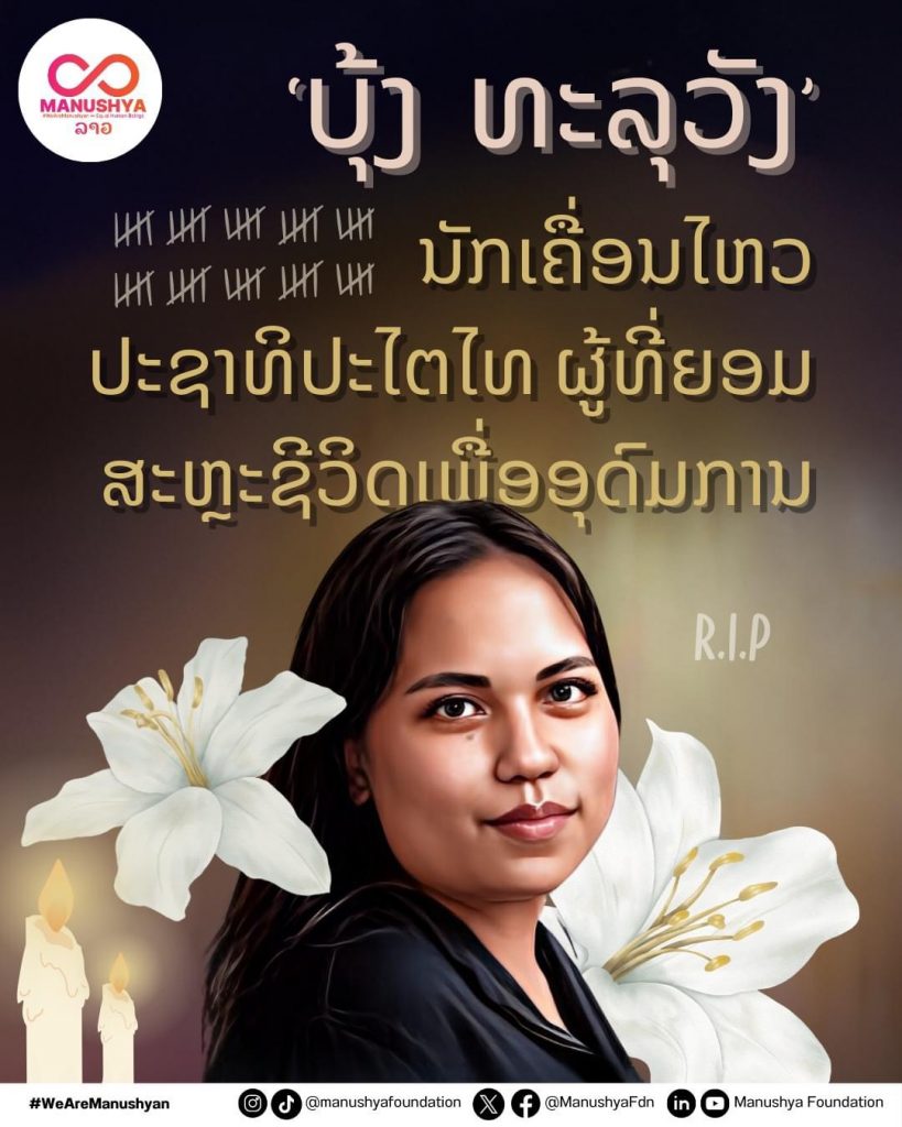 “ບຸ້ງ ທະລຸວັງ ນັກເຄື່ອນໄຫວປະຊາທິປະໄຕໄທຍ ຜູ້ທີຍອມສະຫຼະຊິວີດເພື່ອອຸດົມການ”~ຂ່າວຈາກມຸນິທິມະນຸດສະຍະ~Manushya Lao