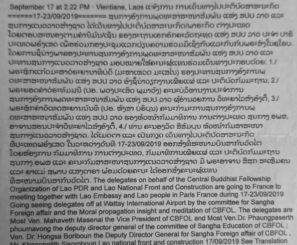 ****ຢ່າໄດ້ຕົກເປັນເຫຍືອຂອງພຣະຄອມມຸນີສອົງນີ້ ທີກຳລັງຈະ“ມາກໍ່ຄວາມວຸ້ນວາຍ ກໍຄື”ການກໍ່ຮ້າຍໃນຊຸມຊົນຊາວລາວອົພຍົບໃນຕ່າງແດນ“