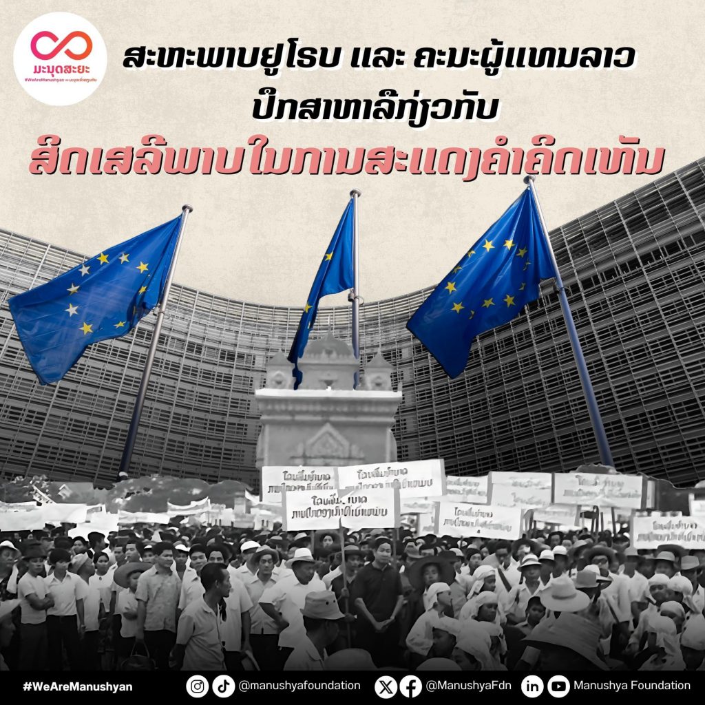 “ສະຫະພາບຢູໂຣບ ແລະ ຄນະຜູ້ແທນລາວ ປຶກສາຫາລືກ່ຽວກັບສິດເສຣີພາບ ໃນການສະແດງຄຳຄິດເຫັນ”~ຂ່າວຈາກມຸນິທິມະນຸດສະຍະ~Manushya Lao 02/08/2024 Lao Info ການເມືອງ - POLITIC https://www.facebook.com/61557965518320/posts/pfbid0uSTzhUaqM8BEat2Nr9csz9KxJkMj368oAtUwdPyRPU7qaDxKSjEjMxM9nCLBbsAxl/