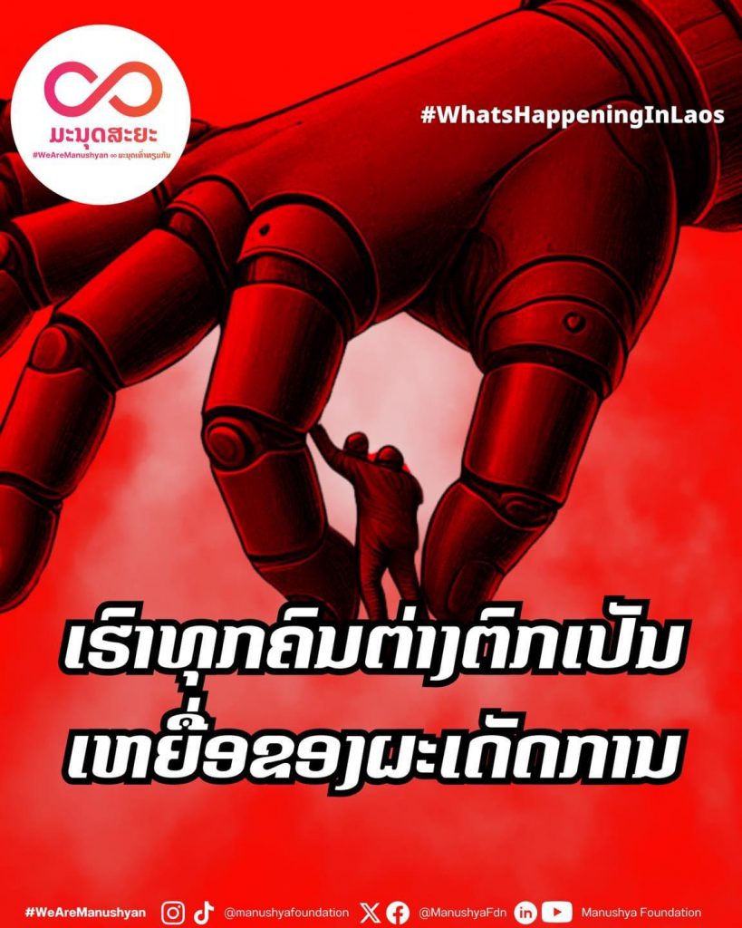 ອຳນາດຜະເດັດການທີ່ຂົ່ມເຫັງປະຊາຊົນລາວຫຼາຍທົດສະວັດ ຈາກການປົກຄອງໂດຍຣັຖະບານພຽງພັກດຽວທີ່ມີອຳນາດຄວບຄຸມສະຕາຊີວິດແທບທຸກດ້ານ ແມ້ໃນທາງກົງຂອງຣະບອບຜະເດັດການ~
