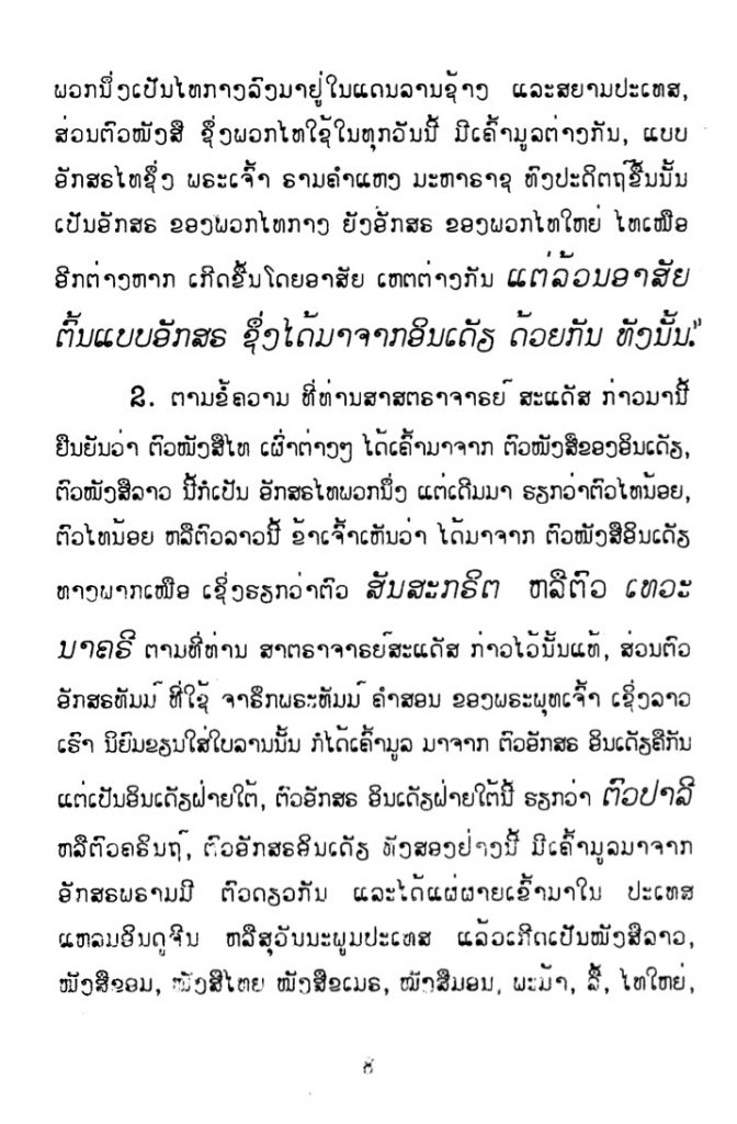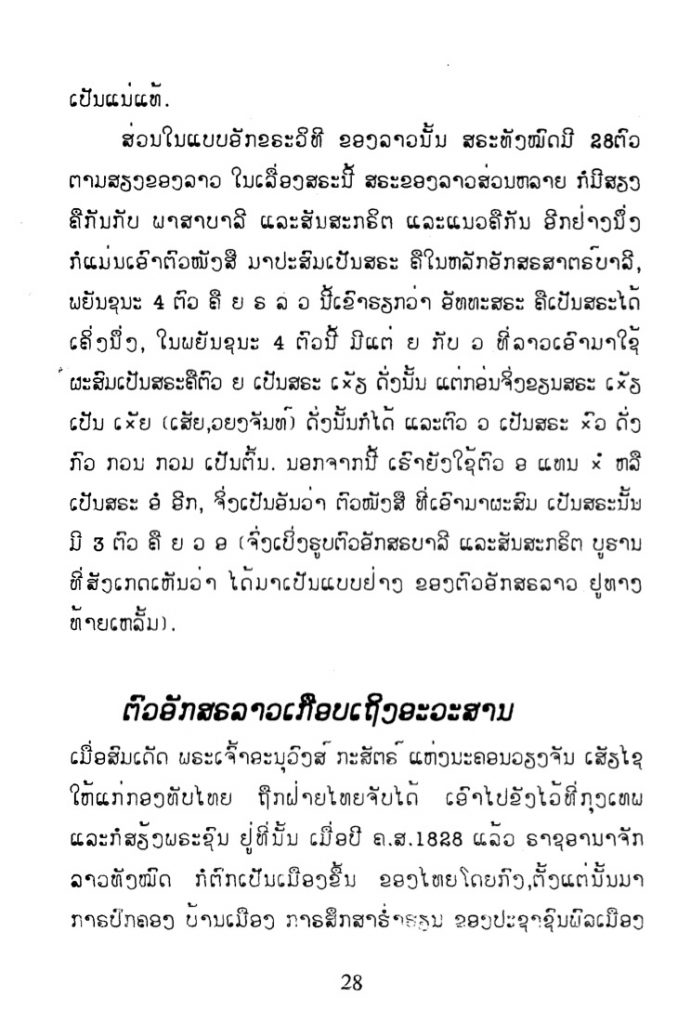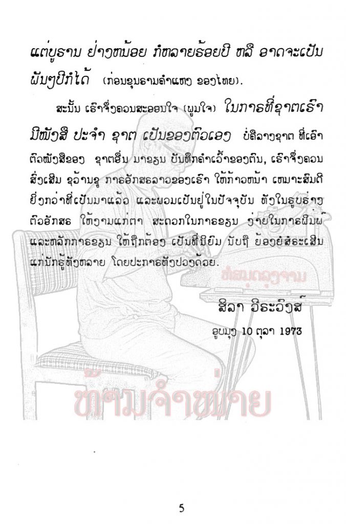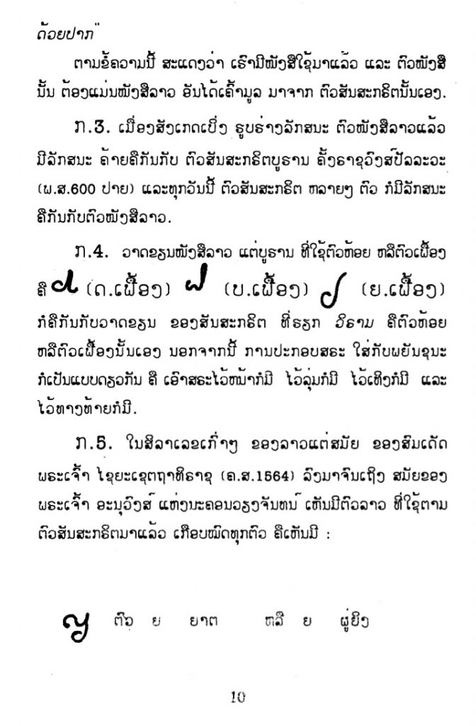 ນອກຈາກນີ້ທ່ານມະຫາສິລາ ວີຣະວົງ ນັກພາສາສາດລາວ ເຄີຍໄດ້ໃຫ້ຄວາມເຫັນໄວ້ວ່າ “ຈາກການອ້າງອີງຕຳນານໜອງແສ ແລະ ການປຽບທຽບໂຕໜັງສືບູຮານຕ່າງໆນັ້ນ ໜັງສືລາວທີ່ພວກເຮົາໃຊ້ໃນທຸກມື້ນີ້ແມ່ນໄດ້ຮັບອິດທິພົນມາຈາກ ໂຕໜັງສືສັນສະກິດ ແລະ ໄດ້ຖືກນຳໃຊ້ໃນແຫຼມສຸວັນນະພູມ ຫຼື ແຫຼມອິນດູຈີນທາງຕອນເໜືອມາເປັນເວລາພັນກວ່າປີ ແລ້ວ.” (ຄັດຈາກ: ປະຫວັດຫນັງສືລາວ, ວຽງຈັນ, ສຳນັກພິມໄຜ່ໜາມ)