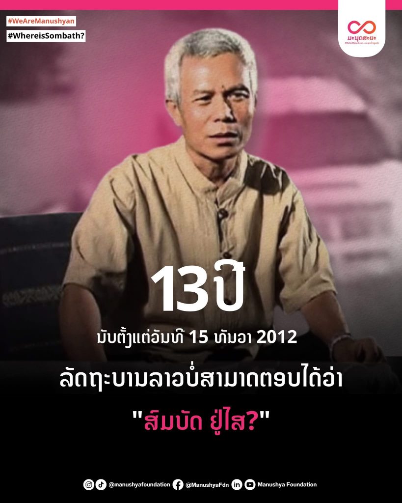 “ ຄົບຮອບ ໑໓ ປີ ການຫາຍຕົວໄປຂອງ ທ່ານ ສົມບັດ ສົມພອນ ທີ່ໃຈກາງນະຄອນຫຼວງວຽງຈັນ”(໒)~ຂ່າວຈາກມຸນິທິມະນຸດສະຍະ~Manushya Lao 15/12/2025 Lao Info ການເມືອງ - POLITIC, ສັງຄົມ - SOCIETY https://www.facebook.com/reel/1192769572802783/