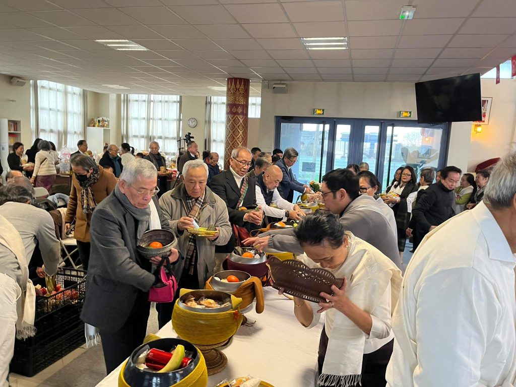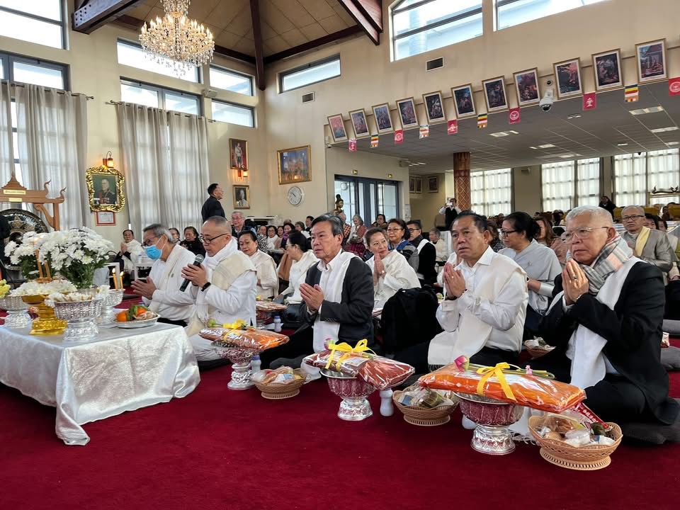 ບຸນອຸທີດແດ່ດວງພຣະວີນຍານຂອງພຣະບາດສົມເດັດພຣະເຈົ້າມະຫາຊິວີດ ສຣີສວ່າງ ວັທນາ ມື້ນີ້ ວັນອາທີດ ວັນທີ ໒໘ ທັນວາ ໒໐໒໕ ທີ່ວັດເວລຸວະນາຣາມແຫ່ງເມືອງບຸດຊີ ແຊງຊອກ ເຂດ ໗໗ ຊານນະຄອນຫຼວງປາຣີສ ປະເທດຝຣັ່ງເສດ :