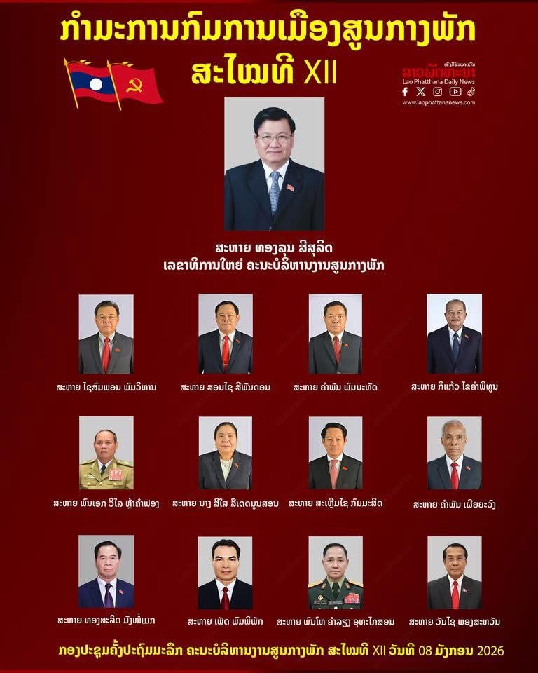 ວັນທີ 8 ມັງກອນ 2026 #ຄະນະບໍລິຫານງານສູນກາງພັກສະໄໝທີ Xll ມີດັ່ງນີ້: