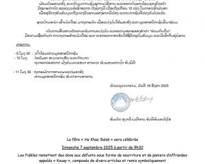“ບຸນອອກພັນສາ ປະວໍຣະນາ”ປະຈຳປີ໒໐໒໕ ຂອງຊາວລາວໃນນະຄອນຫຼວງປາຣີສ ແລະເຂດຊານນະຄອນຫຼວງປະເທດຝຣັ່ງເສດ ທີ່ວັດ ເວລຸວະນາຣາມ ແຫ່ງເມືອງບຸດຊີ ແຊງຊອກ ເຂດ ໗໗ ໃນວັນອາທີດ ວັນທີ ໕ ຕຸລາ ໒໐໒໕ :