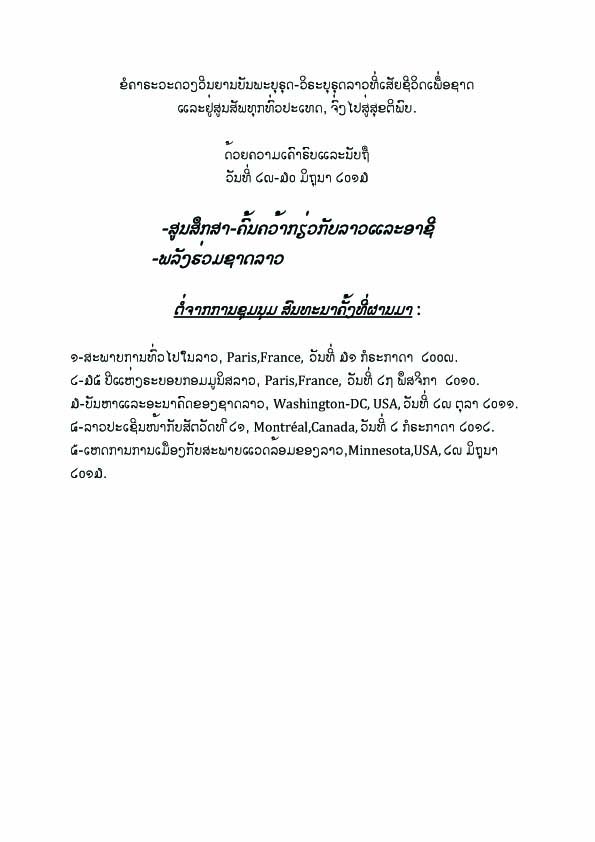 Colloque lao à Minnesota USA 2013 - ສຣຸບຊູມນຸມສົນທະນາທີ່ ມີເນໂຊຕາ ສະຫະຮ້ດອະເມຣິກາ 29-30 ມິຖຸນາ 2013 :