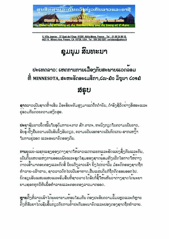 Colloque lao à Minnesota USA 2013 - ສຣຸບຊູມນຸມສົນທະນາທີ່ ມີເນໂຊຕາ ສະຫະຮ້ດອະເມຣິກາ 29-30 ມິຖຸນາ 2013 :